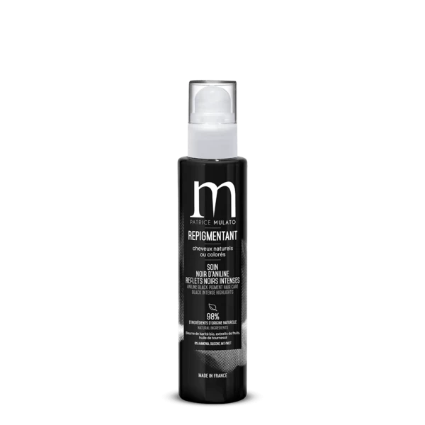 « Soin crème repigmentant noir d’aniline, reflets noirs intenses.