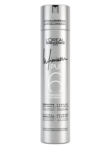 Infinium Pure est la 1ère laque professionnelle sans parfum et sans masqueur d’odeurs. Sa formule hypoallergĂ©nique contient 6 ingrĂ©dients maximum pour un confort d’utilisation optimal tout en garantissant une performance professionnelle. La laque Infinium Pure apporte une brillance incomparable Ă la chevelure tout en offrant un toucher naturel. Sa diffusion ultra fine permet une fixation flexible pour crĂ©er et retravailler les looks les plus tendances. Confort d’utilisation, diffusion ultra fine, toucher naturel et brillance ultime.